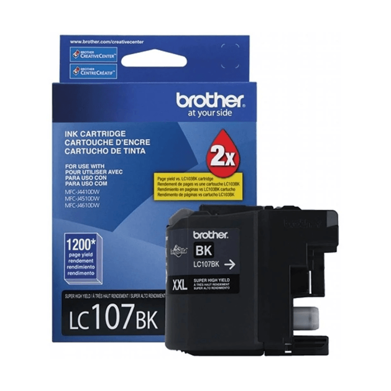 El excelente Cartucho Brother LC107B Extra High Yield, de color Negro. Cuenta con la capacidad de 1200 Páginas. Dicho Cartucho de Tinta Original de marca Brother. Es seguramente una opción de alto rendimiento. Fabricado bajo el código LC107B XXL.