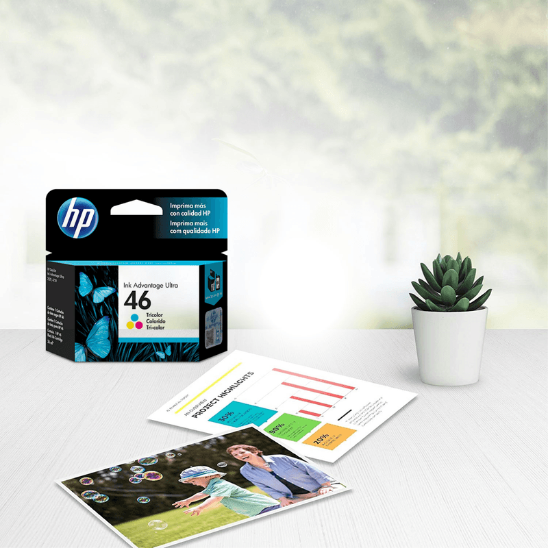 El rendidor Cartucho HP 46, Tricolor. Con una capacidad de 750 Páginas. Dicho Cartucho de Tinta Original fabricado por HP. Es sin lugar a duda un producto de calidad destacable. Fabricado bajo el código CZ638AL.
