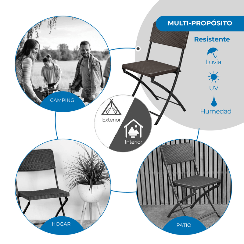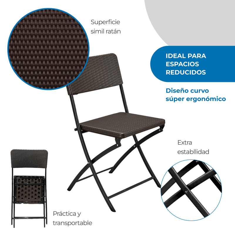 Combo x6 Silla Plegable Skop Garden Diseño Rattan Exterior Jardin color marrón.