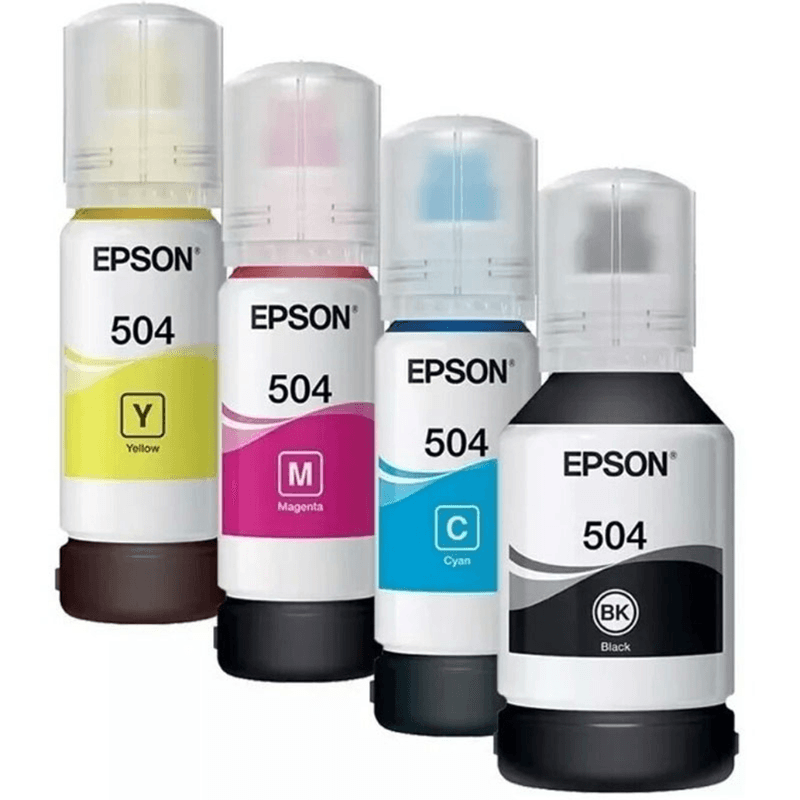 Aproveche el excelente Combo Epson 504 (T504120-AL, T504220-AL, T504320-AL, T504420-AL) compatible con las impresoras Epson Ecotank L4150, L4160, L6161, L6171, L6191