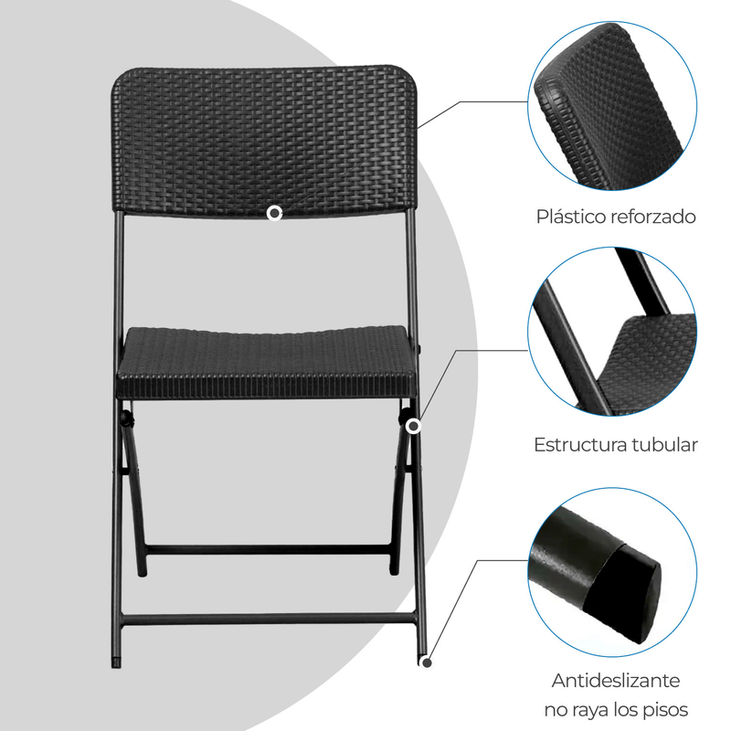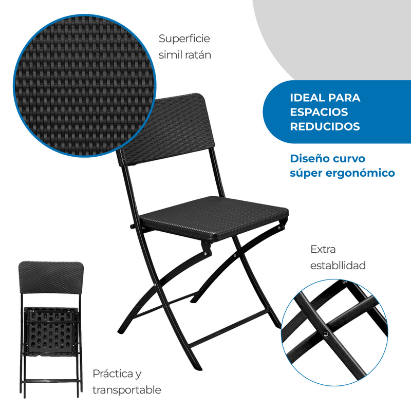 Silla Plegable Skop Garden Diseño Rattan Exterior Jardin Color Negro x4
