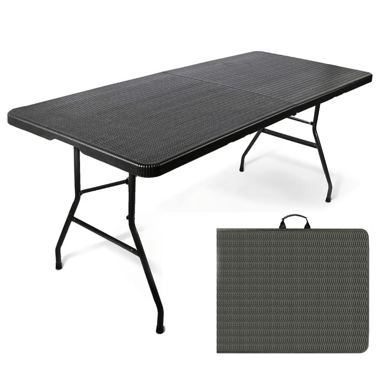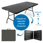 Mesa Plástica Plegable Multiuso Skop Garden Simil Ratán Valija 180 Cm Color Negro