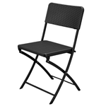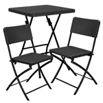 Combo Mesa Plástica Plegable Skop Garden Multiuso Simil Ratán 60 x 60 cm Color Marrón + 2 Sillas Plegables Diseño Rattan Exterior Jardin Color Negro