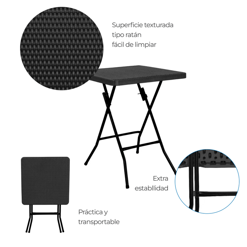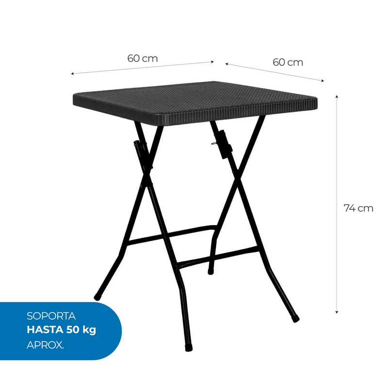 Mesa Plástica Plegable Multiuso Skop Garden Simil Ratán 60 x 60 cm Color Negro