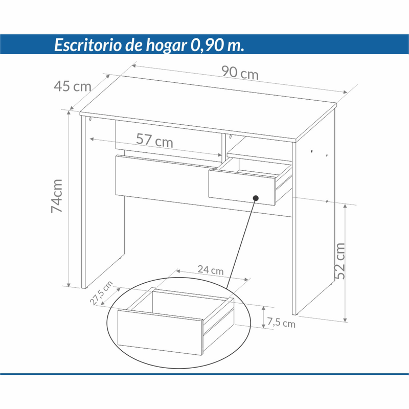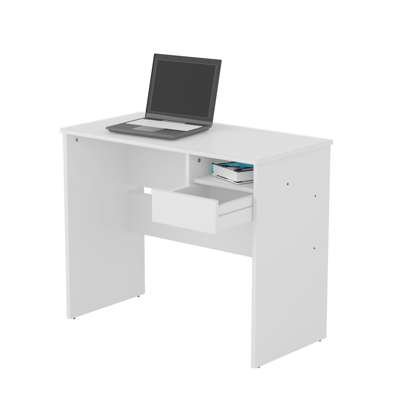 Escritorio Mesa Pc 0,90m 1 cajón 1 estante Computacion Melamina Color Blanco PIRO OES090