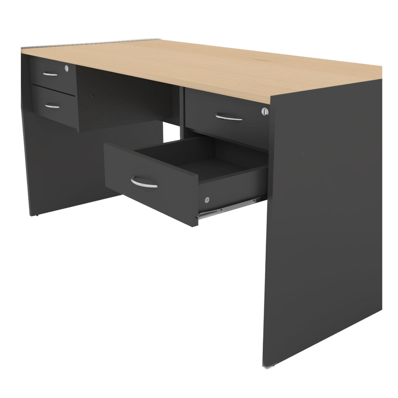 Escritorio Oficina 4 Cajones 150cm 18mm Espesor Premium 912 Color Negro/haya