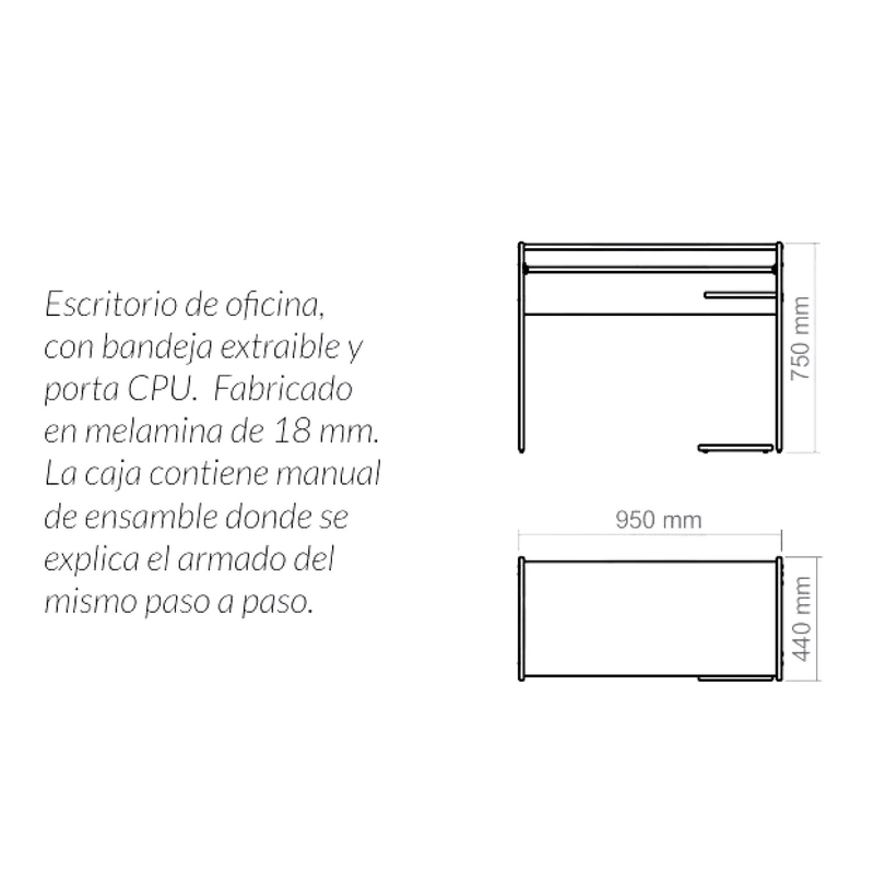 Escritorio Oficina 95cm 18mm Espesor Porta Teclado Cpu 830 Color Blanco