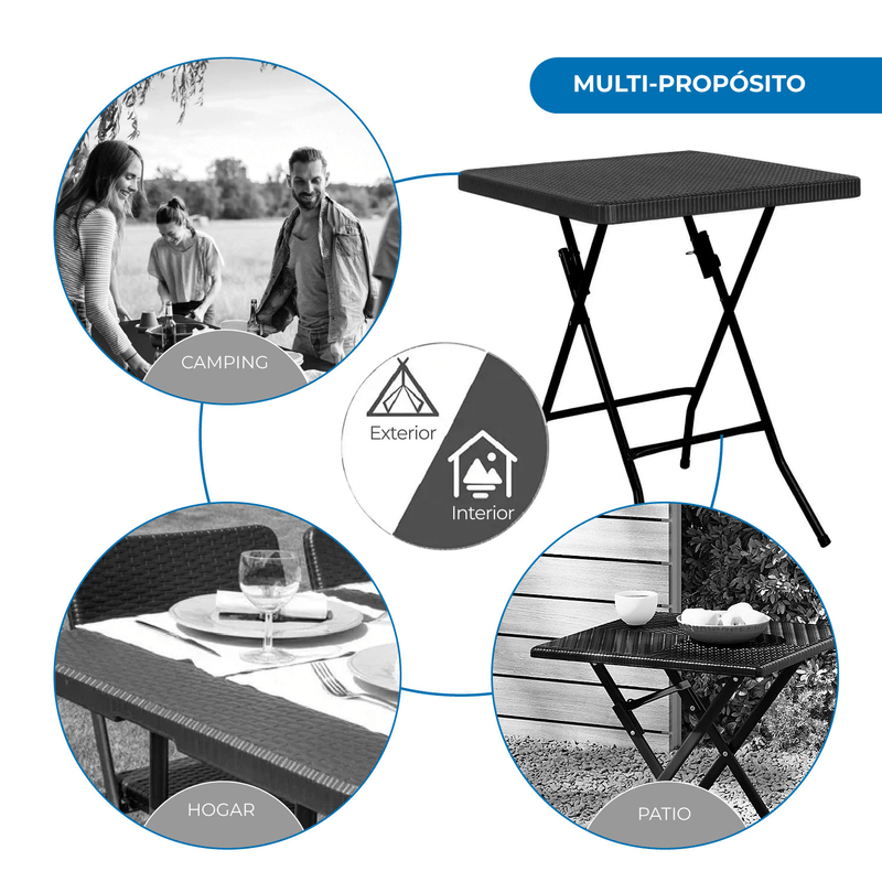 Mesa Plástica Plegable Multiuso Skop Garden Simil Ratán 60 x 60 cm Color Negro